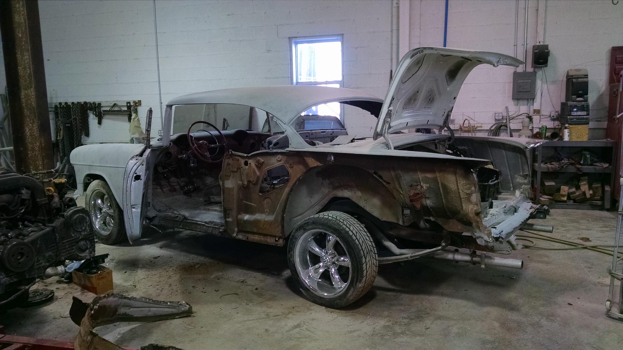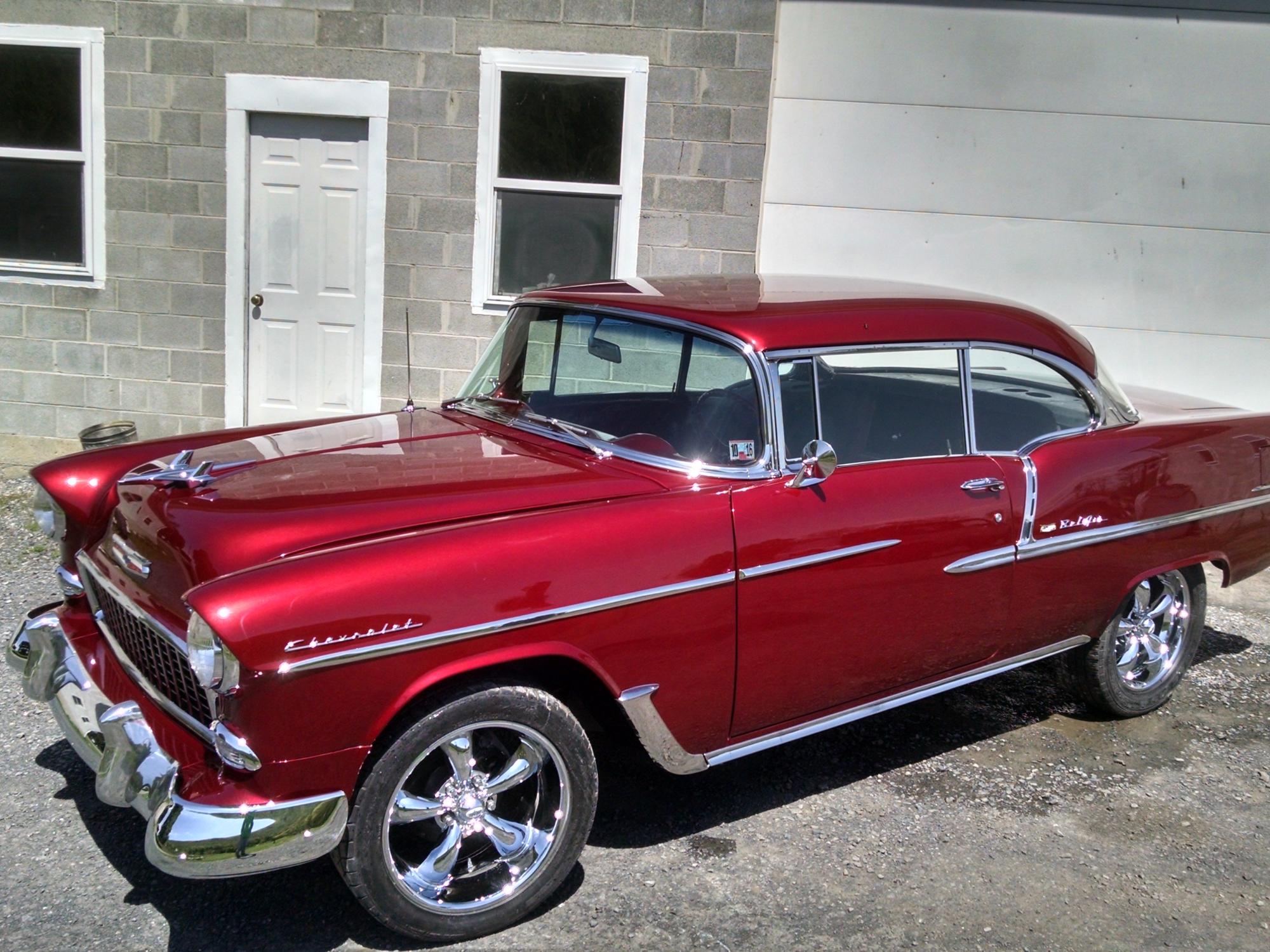 This 1955 Chevy Bel Air Hardtop needed a lot of work when it came to the shop.  A couple months later it left as a beautiful candy apple red show piece.